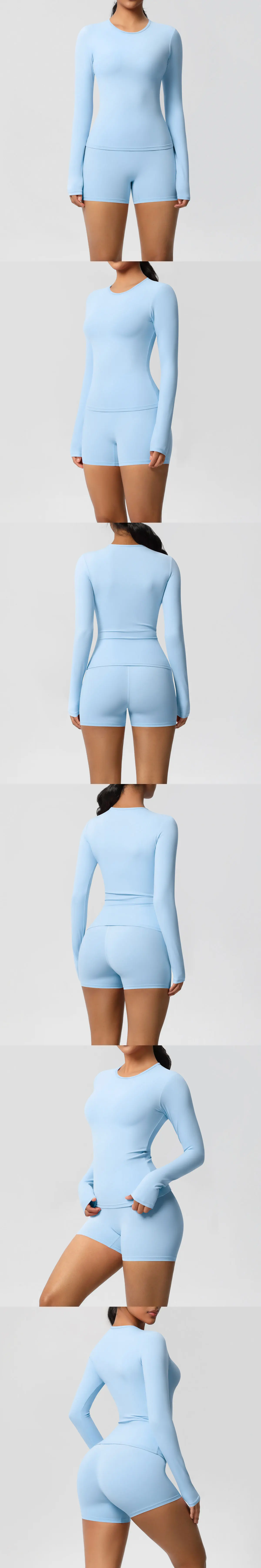 2 Piece Yoga Set, Long Sleeved Top & High Waisted Shorts